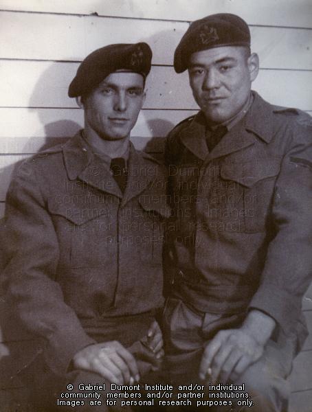 | Description: | Eugene Morin (right) with an unknown man. This image is to be used for research purposes only. The reproduction of this image in whole or in part is strictly prohibited without the permission of the copyright holder. Copyright for this image belongs to Lawrence Arnault, and/or the person(s) in the photograph, and/or their descendants. |