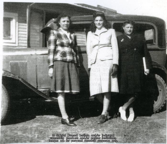 Victoria (Bebe) Sinclair (left) and her two first cousins, Ernestine (centre) and Rose Laliberte. Ernestine and Rose were the daughters of Baptiste (Seestook) Laliberte. This image is to be used for research purposes only. The reproduction of this image in whole or in part is strictly prohibited without the permission of the copyright holder. Copyright for this image belongs to Lawrence Arnault, and/or the person(s) in the photograph, and/or their descendents. |
