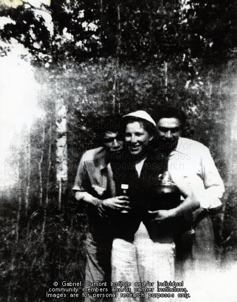 Three children of Cyril and Georgina (Desjarlais) Morin. Left to right, Joe, Bernice and Lawrence. This image is to be used for research purposes only. The reproduction of this image in whole or in part is strictly prohibited without the permission of the copyright holder. Copyright for this image belongs to Lawrence Arnault, and/or the person(s) in the photograph, and/or their descendants. |