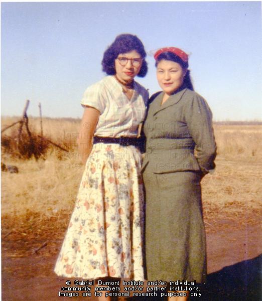 Lucy Morin (left) with her cousin Cecile Merasty. This image is to be used for research purposes only. The reproduction of this image in whole or in part is strictly prohibited without the permission of the copyright holder. Copyright for this image belongs to Lawrence Arnault, and/or the person(s) in the photograph, and/or their descendants. |