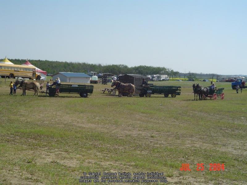 | Description: | Grounds, Back to Batoche, 2004 including three teams and wagons.