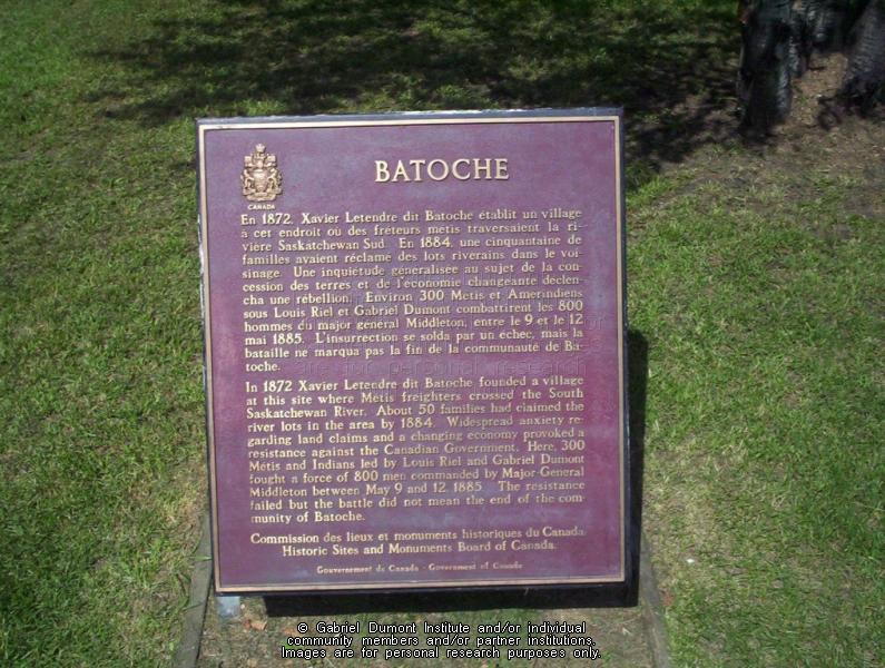 Information plaque at Batoche National Historic Site. Image taken at the Aboriginal Literacy Festival, 2005. |