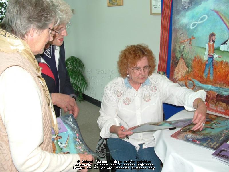 | Description: | Donna Lee Dumont signing a copy of her poster at National Aboriginal Day. |