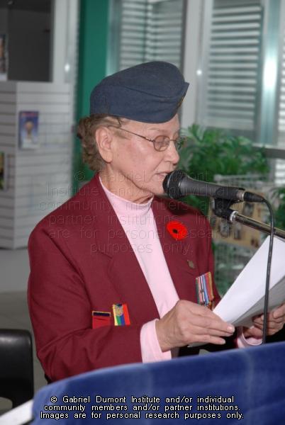 | Description: | Métis veteran, Janet Blaze at Louis Riel and Métis Veterans Day. |