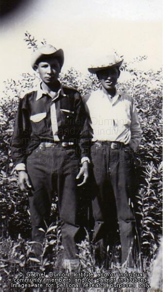Allan Chatelaine and Ray Chatelaine. This image is to be used for research purposes only. The reproduction of this image in whole or in part is strictly prohibited without the permission of the copyright holder. Copyright for this image belongs to Lawrence Arnault, and/or the person(s) in the photograph, and/or their descendants. |