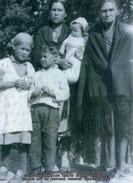 At right is Lucia Gardiner (Daignault) and next to her carrying a baby is her daughter Vitaline. Lucia was the wife of Robert Gardiner Sr. This image is to be used for research purposes only. The reproduction of this image in whole or in part is strictly prohibited without the permission of the copyright holder. Copyright for this image belongs to Lawrence Arnault, and/or the person(s) in the photograph, and/or their descendants. |