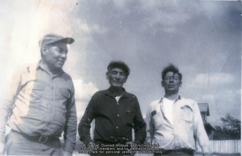 Joe Merasty, James Merasty and Abraham Caisse. This image is to be used for research purposes only. The reproduction of this image in whole or in part is strictly prohibited without the permission of the copyright holder. Copyright for this image belongs to Lawrence Arnault, and/or the person(s) in the photograph, and/or their descendants. |