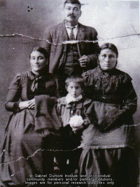 This is a photograph of William Morin and his wife (on the left)is Judille (née DeLaronde) Morin. The lady on the right is Josephte (née Apisis) Morin. The boy could be either Judille’s or Josephte’s as they both had sons. Corrected information for this photograph was provided by Marsha Flamond. This image is to be used for research purposes only. The reproduction of this image in whole or in part is strictly prohibited without the permission of the copyright holder. Copyright for this image belongs to Lawrence Arnault, and/or the person(s) in the photograph, and/or their descendants. |