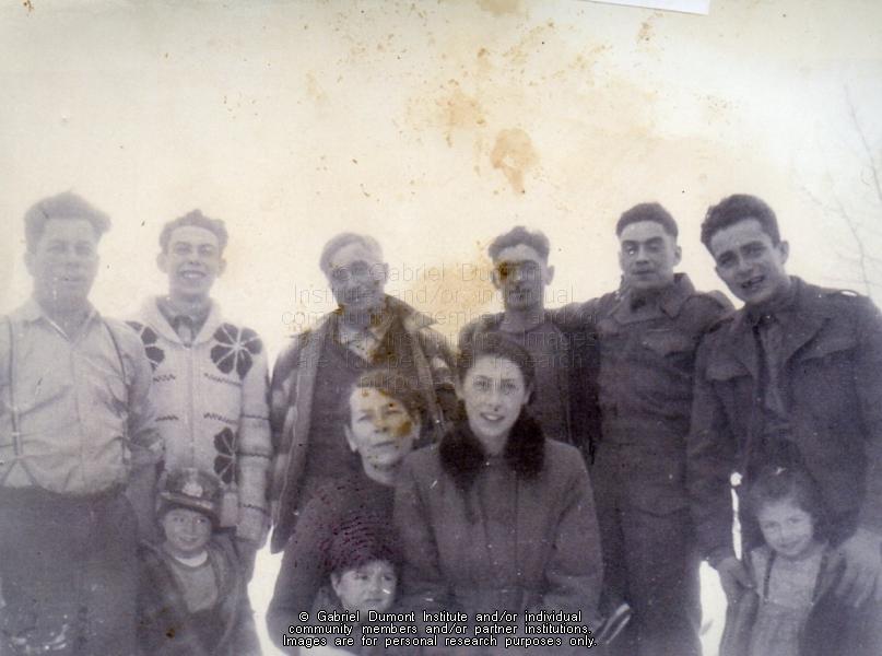 Bill Sr and Vilna Fiddler and family. Back row: Max, Ronnie, Bill Sr (father), Benny, Billy Jr, and Clarence. Front row: Vilna (mother) and Leona. This image is to be used for research purposes only. The reproduction of this image in whole or in part is strictly prohibited without the permission of the copyright holder. Copyright for this image belongs to Lawrence Arnault, and/or the person(s) in the photograph, and/or their descendants. |
