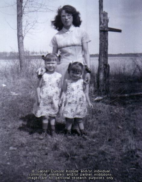 Rose Fiddler with nieces Marilyn and Charlene Arnault. The reproduction of this image in whole or in part is strictly prohibited without the permission of the copyright holder. Copyright for this image belongs to Lawrence Arnault, and/or the person(s) in the photograph, and/or their descendants. |