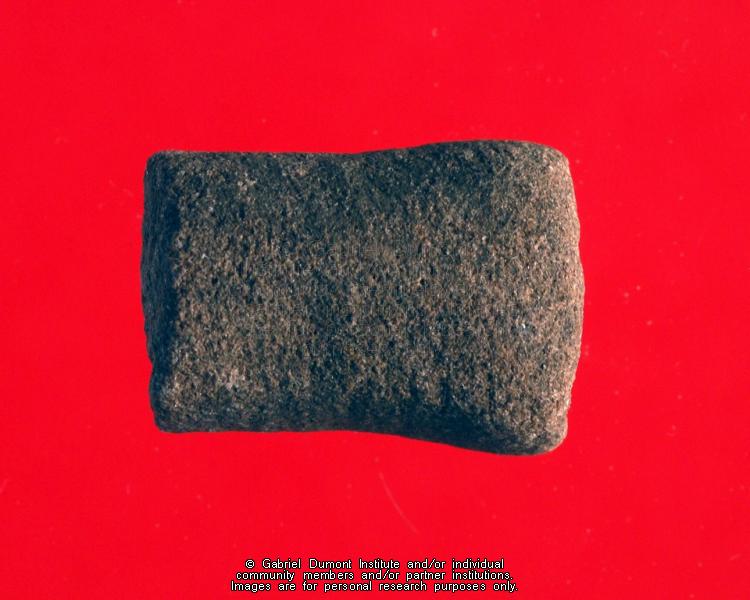 This image (by Peter Beszterda) is of hide scraper found on Gabriel Dumont`s former property at Gabriel`s Crossing. It was collected by Dennis and Jean Fisher and their sons in the late 1960s or early 1970s. It is part of the Dennis and Jean Fisher Collection. This collection contains archaeological artifacts taken from the battlefields of the 1885 Resistance as well as Fort Pitt (Saskatchewan), Cumberland House (Saskatchewan) and St. Peter’s Mission, Montana. The collection also includes various artifacts and ephemera relating to the 1885 Resistance and Gabriel Dumont. |