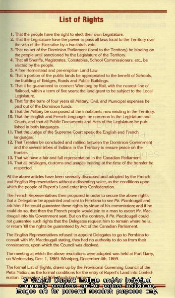 This pamphlet was produced by the Batoche Centenary Corporation (a non-profit Métis group) for the 1885 Resistance’s centenary in 1985. This item was donated to the Institute by Dennis and Jean Fisher in 2011. This collection contains archaeological artifacts taken from the battlefields of the 1885 Resistance as well as Fort Pitt (Saskatchewan), Cumberland House (Saskatchewan) and St. Peter’s Mission, Montana. The collection also includes various artifacts and ephemera relating to the 1885 Resistance and Gabriel Dumont. |