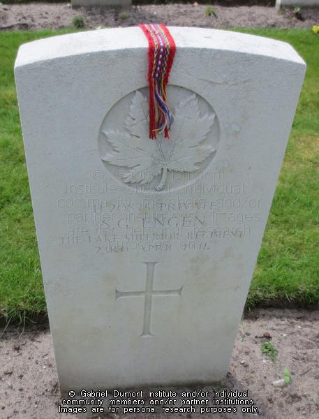 Gravestone of Samuel George Engen, H.20875 Private, The Lake Superior Regiment. Died April 23rd, 1945. |