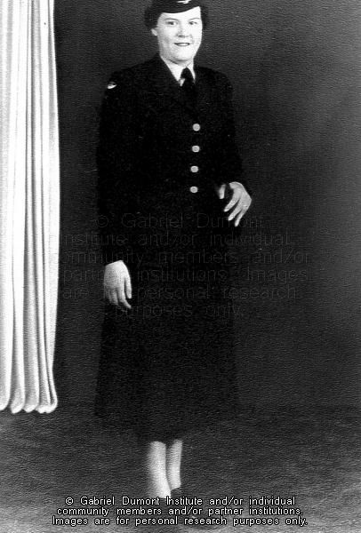 | Description: | This is an image of Aircraft Woman 1st Class (Alvina) Estelle Josette Boyer who served with the Royal Canadian Air Force from 1955-1956. Estelle was born in Batoche, Saskatchewan. Source: Brenda Boyer-Percell. Estelle was Brenda’s mother. This image must not be reproduced. The original source of this image is Estelle Boyer. |