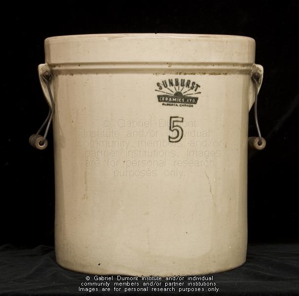 | Description: | This image by Peter Beszterda is of a 5 gallon ceramic crock, made by Sunburst Ceramics Limited. |