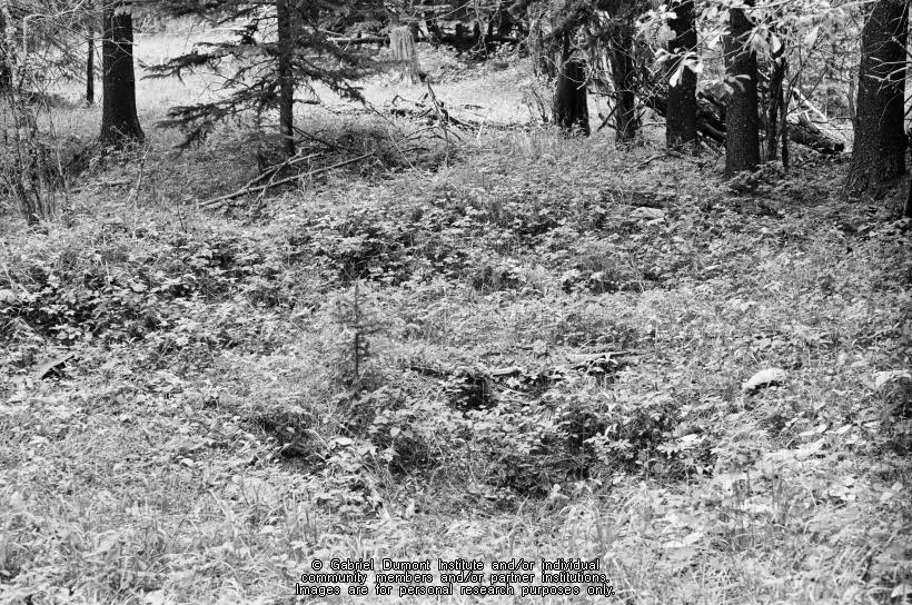 | Description: | This image is a photograph of the Kajewski site, Métis hivernant (``winterer``) cabins near Elkwater, Alberta. The site is in the Cypress Hills and this particular image was photographed in 1967 by Robson Bonnichsen.