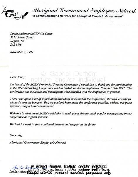 Letter, Aboriginal Government Employees Network