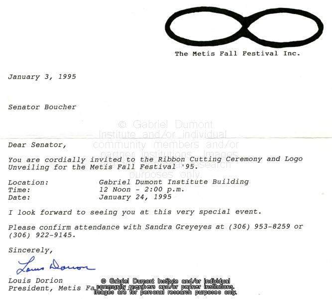 | Description: | This document is a letter from Louis Dorion to John Boucher inviting him to the Prince Albert Métis Fall Festival. |
