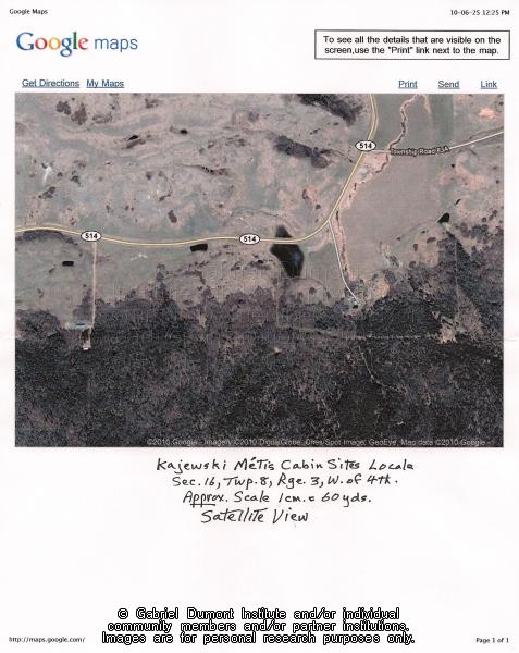 | Description: | This image is a satellite photograph of the area the Kajewski Site at the Head of the Mountain, a Métis Hivernant settlement in the Cypress Hills. Jack Elliott`s 1971 MA thesis—``Hivernant Archaeology in the Cypress Hills``—is based on an archaeological reconstruction of Cabins B and E of the Kajewski cabin site near Elkwater Alberta in the Cypress Hills. In this thesis, Jack Eliott analyzes the archaeological reconstruction of two Métis hivernant (``winterer``) cabins in the western half of the Cypress Hills. Hivernant is the French word for ``winterer,`` and in the Métis context refers to those Métis bison hunters and their families who settled during the winter in wooded, sheltered environments on the southern prairies such as the Cypress Hills, Wood Mountain, and Willow Bunch. These locales offered shelter from fierce prairie winters and provided game, wood, and fresh water. At the Kajewski site, Jack noticed that in the bison processing pits and in other areas of the cabin floors, there was a mixture of Euro-Canadian/American iron tools and older, Pre-Contact-style First Nation’s stone tools. At the time, archaeologists were puzzled by this mixture of tool cultures at the site and within its stratigraphy (the layer of sedimentation at an archaeological site), suggesting that the Métis at these wintering sites used the ``old`` and ``new`` tools interchangeably. Archaeologists thought it curious that the Métis hivernants willingly used stone tools when ``better`` iron tools were available to scrap bison hides and cut meat. Jack argued that the Métis used both tool types while his colleagues thought otherwise. This debate has continued to this day.