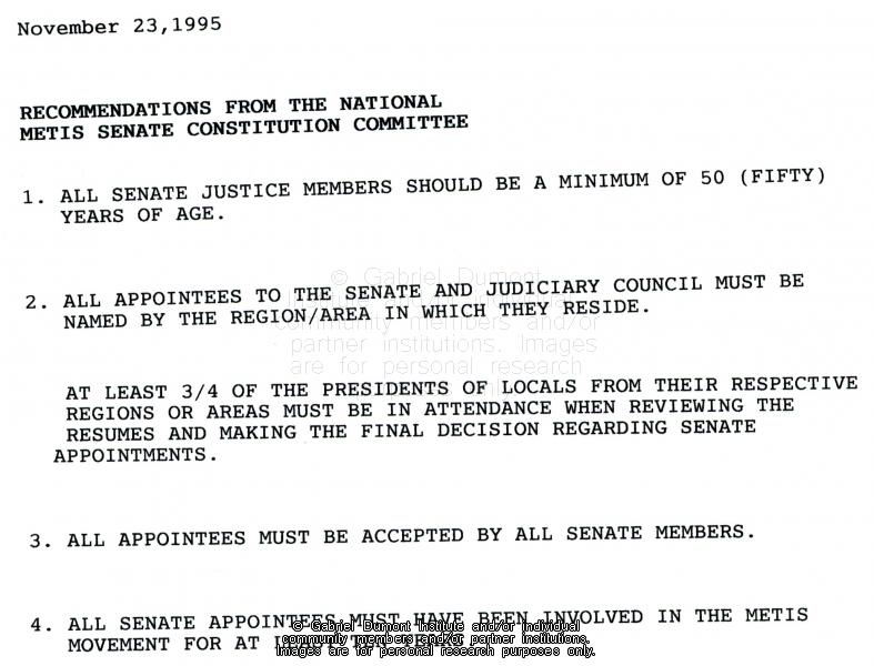 Métis National Council, Recommendations From the National Métis Senate Constitution Committee