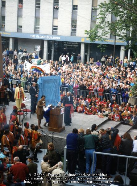 | Description: | This is an image of Nelson Mandela wearing a Métis Sash given to him by John Boucher.