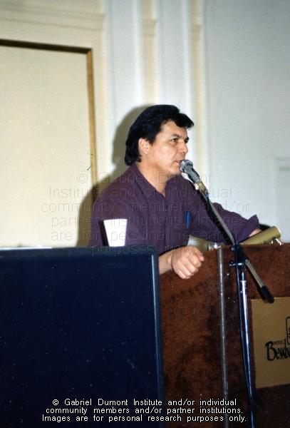 | Description: | This image is of Philip Chartier at a Métis Society of Saskatchewan conference in the winter of 1988-1989. |