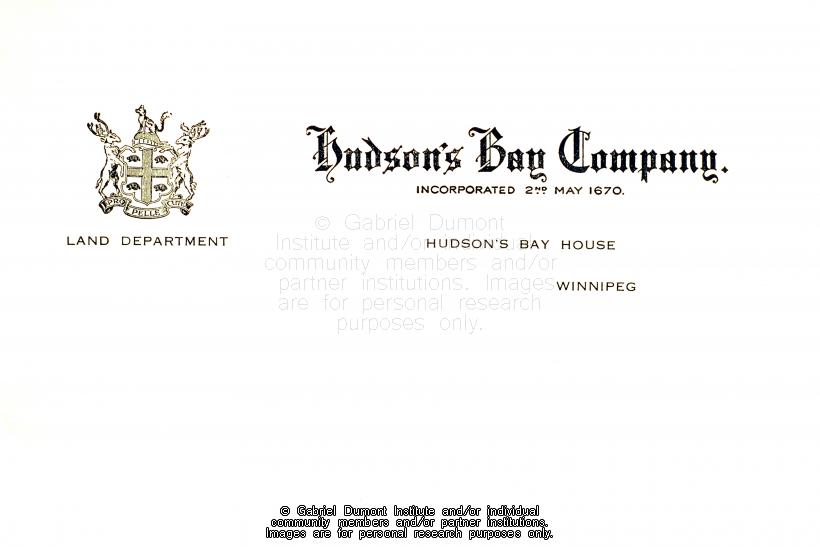| Description: | This artifact, part of the Gabriel Dumont Institute collection, is a close-up of a Hudson's Bay Company letterhead. |