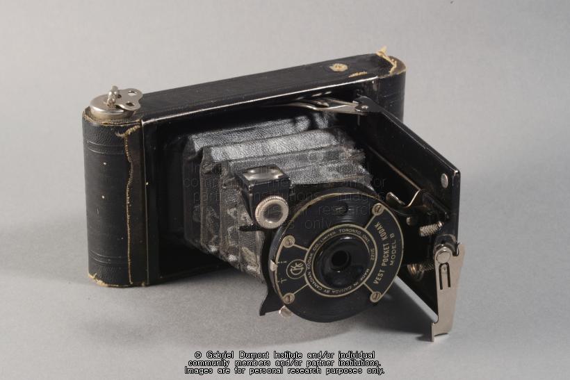 | Description: | This is an image of a camera. Edward (“Ed’) Dumont was a veteran of the Second World War. This collection was donated to the Gabriel Dumont Institute by his niece, Elsie (Dumont) Busby and her husband, Berry Busby.