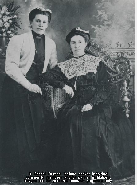 This is an image of (L-R) Alexina Laderoute (1890-1980) and Agnes Laderoute (1894-1976), sisters of Berthe Laderoute Boyer (1900-1967). Source: Brenda Boyer-Percell. This image must not be reproduced. The original source of this image is with Estelle Boyer. |