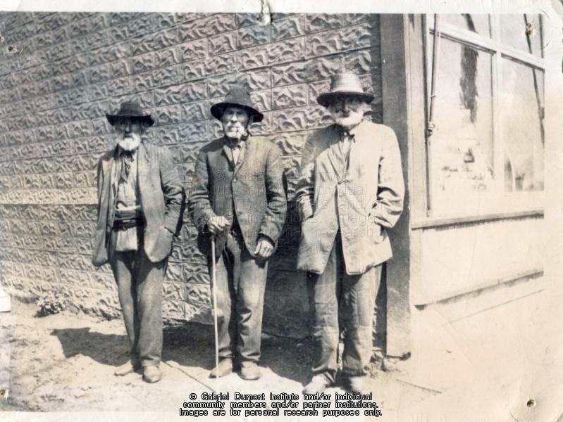 | Description: | Photograph of Joseph Arcand, Labish Arcand, and Francois Arcand standing alongside a building. This image has been graciously provided by the Duck Lake Regional Interpretive Centre for use on this website. It is available for research purposes only. The reproduction of this image in whole or in part is strictly prohibited without permission of the copyright holder.