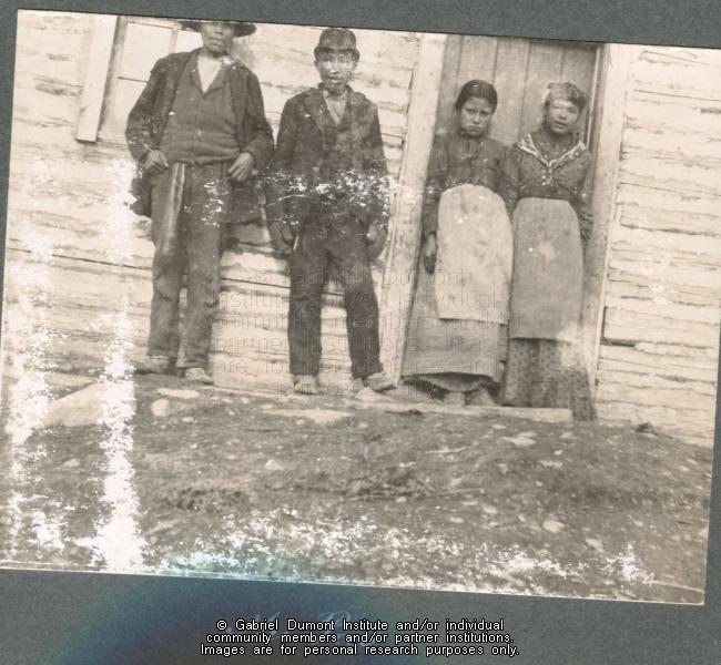 | Description: | Four unidentified children standing in front of a building at the time of the visit by the Half-Breed Commissioners, The Pas, MB, 1900. This image has been graciously provided by the Duck Lake Regional Interpretive Centre for use on this website. It is available for research purposes only. The reproduction of this image in whole or in part is strictly prohibited without the permission of the copyright holder. |