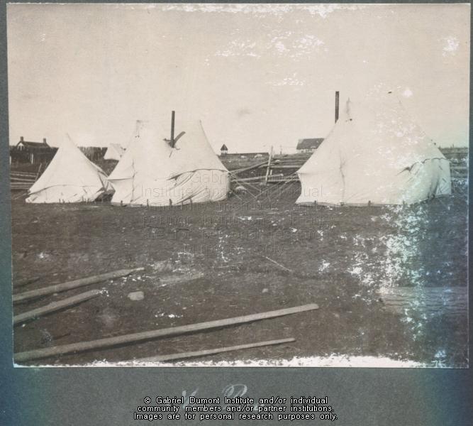 | Description: | Tents at The Pas during the visit by the Half-Breed Commissioners, The Pas, MB, 1900. This image has been graciously provided by the Duck Lake Regional Interpretive Centre for use on this website. It is available for research purposes only. The reproduction of this image in whole or in part is strictly prohibited without the permission of the copyright holder. |