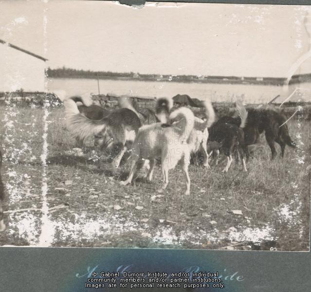 | Description: | Dogs feeding at Grand Rapids, MB, 1900. This image has been graciously provided by the Duck Lake Regional Interpretive Centre for use on this website. It is available for research purposes only. The reproduction of this image in whole or in part is strictly prohibited without the permission of the copyright holder. |