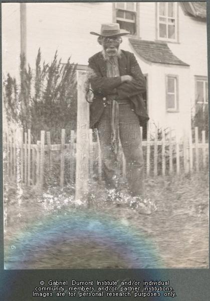 | Description: | François Semine standing in front of a white house at the time of the visit by the Half-Breed Commissioners to north-central Saskatchewan, 1900. This image has been graciously provided by the Duck Lake Regional Interpretive Centre for use on this website. It is available for research purposes only. The reproduction of this image in whole or in part is strictly prohibited without the permission of the copyright holder. |