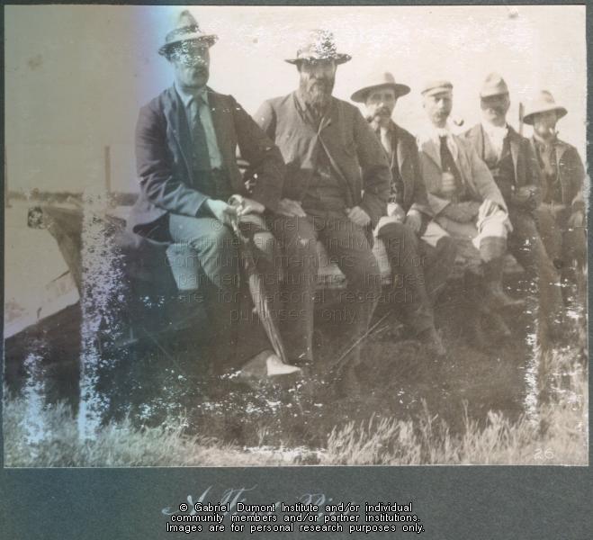 Members of the Half-Breed Commission (Including N.O. Côté, third from right) at Fort Pitt, 1900. This image has been graciously provided by the Duck Lake Regional Interpretive Centre for use on this website. It is available for research purposes only. The reproduction of this image in whole or in part is strictly prohibited without the permission of the copyright holder. |