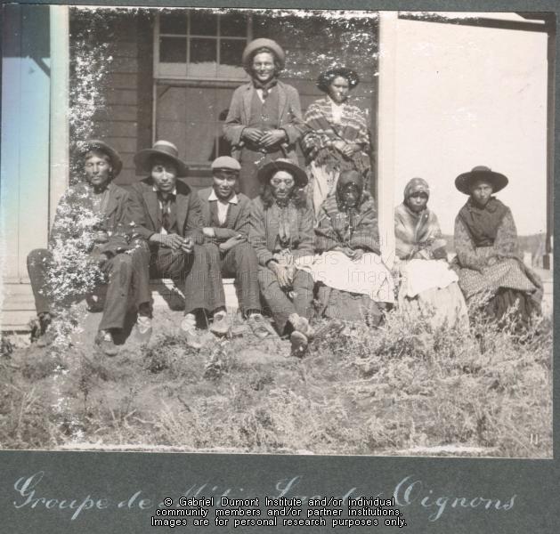Métis at Onion Lake, NWT, 1900. This image has been graciously provided by the Duck Lake Regional Interpretive Centre for use on this website. It is available for research purposes only. The reproduction of this image in whole or in part is strictly prohibited without the permission of the copyright holder. |