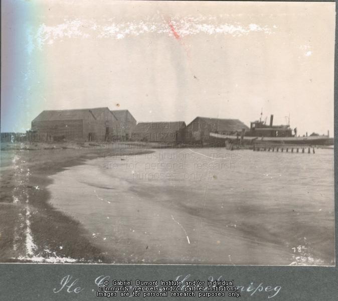Description: View of buildings on George Island, Lake Winnipeg, 1900. This image has been graciously provided by the Duck Lake Regional Interpretive Centre for use on this website. It is available for research purposes only. The reproduction of this image in whole or in part is strictly prohibited without the permission of the copyright holder.