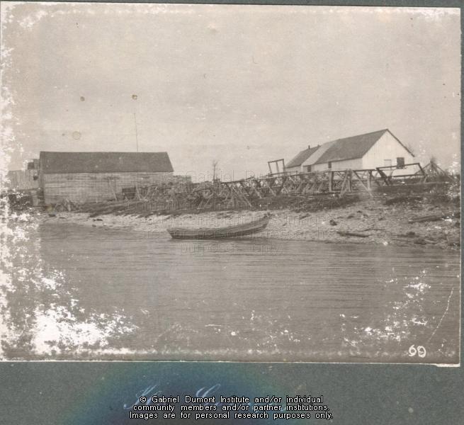 Description: View of buildings on George Island, Lake Winnipeg, 1900. This image has been graciously provided by the Duck Lake Regional Interpretive Centre for use on this website. It is available for research purposes only. The reproduction of this image in whole or in part is strictly prohibited without the permission of the copyright holder.