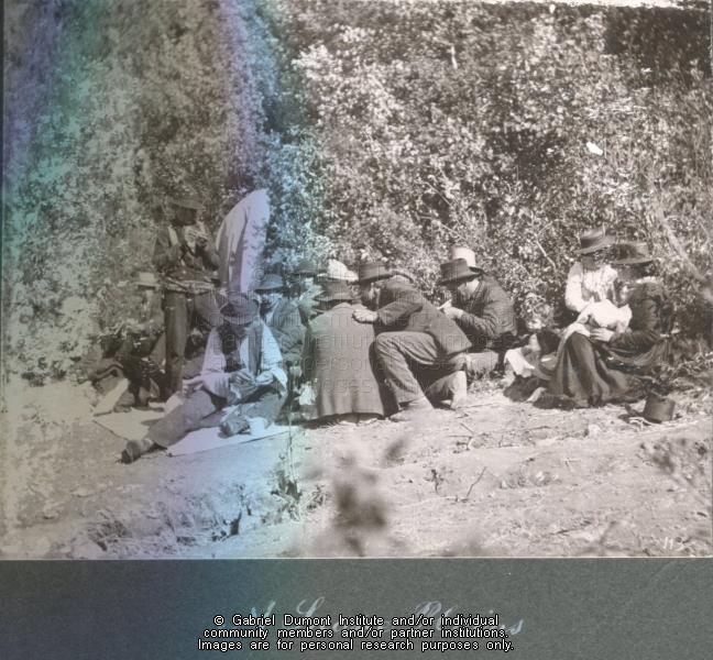 Description: Métis at Snake Plains at the time of the visit by the Half-Breed Commissioners, 1900. This image has been graciously provided by the Duck Lake Regional Interpretive Centre for use on this website. It is available for research purposes only. The reproduction of this image in whole or in part is strictly prohibited without the permission of the copyright holder.