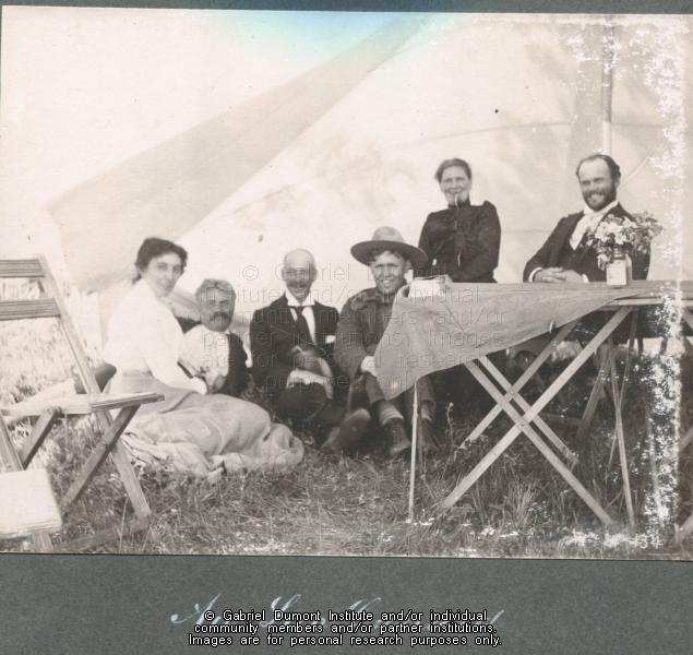 | Description: | A group of people seated in what appears to be the Half-Breed Commissioners' mess tent at the time of the Commissioner's visit to Duck Lake, 1900. This image has been graciously provided by the Duck Lake Regional Interpretive Centre for use on this website. It is available for research purposes only. The reproduction of this image in whole or in part is strictly prohibited without the permission of the copyright holder. |