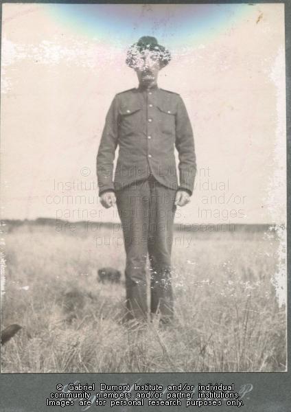 | Description: | Portrait of Sergeant Hall, standing in a field, 1900. This image has been graciously provided by the Duck Lake Regional Interpretive Centre for use on this website. It is available for research purposes only. The reproduction of this image in whole or in part is strictly prohibited without the permission of the copyright holder. |