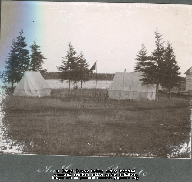 Half-Breed Commissioners' camp, Grand Rapids MB, 1900. This image has been graciously provided by the Duck Lake Regional Interpretive Centre for use on this website. It is available for research purposes only. The reproduction of this image in whole or in part is strictly prohibited without the permission of the copyright holder. |