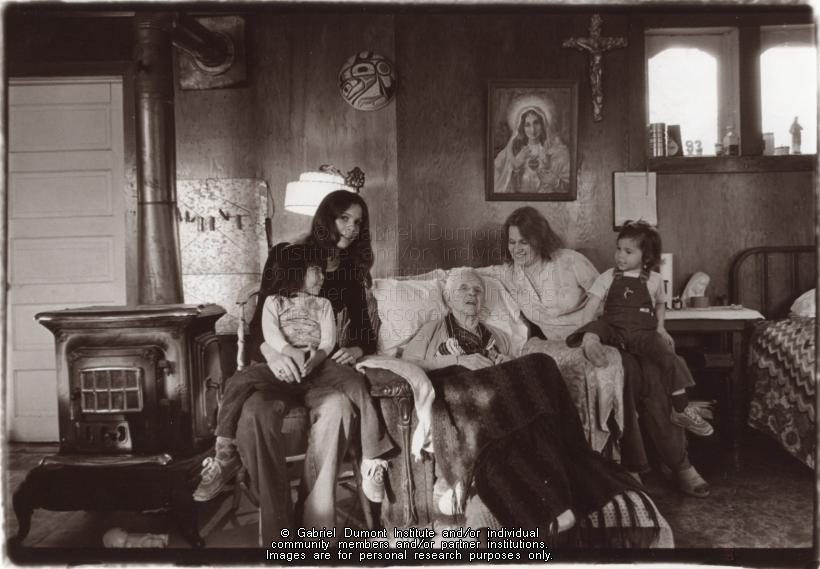 | Description: | Photograph of Mary Louise Arcand surrounded by two women and two young girls.