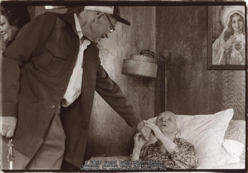 | Description: | Photograph of Mary Louise Arcand holding the hand of an unidentified man.