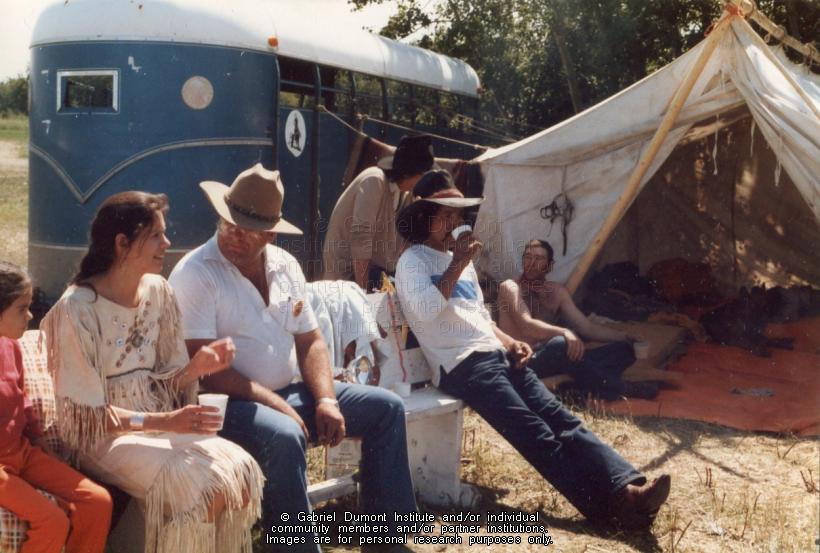 | Description: | Photograph of family at campground at Medstead, Sask. as part of the Back to Batoche Alberta Wagon Train. See also photo 86_4_4_5, 86_4_4_8 and 86_4_4_9.