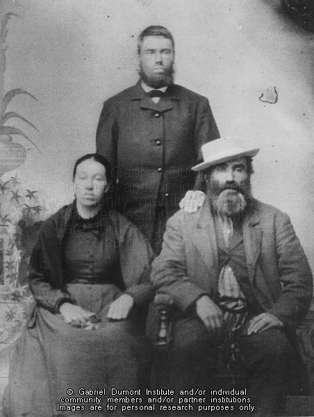 This is an image of (L-R) Genevieve Dumas (1858-1923), Pierre Dumas (1855-?), and Jean Caron Sr. (1833-1905). Source: Brenda Boyer-Percell. This image must not be reproduced. The original source of this image is Omer Ranger and Estelle Boyer. |