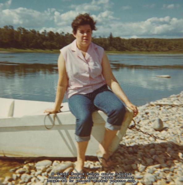 This is an image of Estelle Boyer (1935-2012) at the South Saskatchewan River, St. Laurent de Grandin, Saskatchewan. Source: Brenda Boyer-Percell. This image must not be reproduced. The original source of this image is Estelle Boyer. |