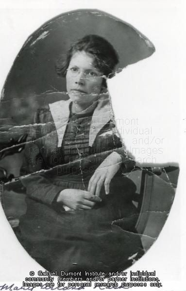 | Description: | Damaged portrait of Mary Arcand Rask, with handwritten caption.