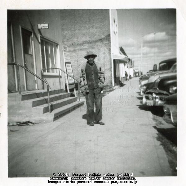 | Description: | Photograph of an unidentified man standing on a sidewalk.