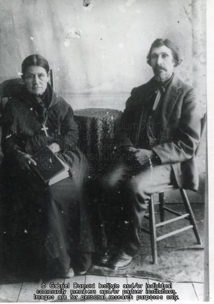 | Description: | Scanned photograph from scrapbook. Portrait of Patrice Fleury, Sr. and Agathe Wilkey [Wilkie], sister of Gabriel Dumont's wife, Madeline Wilkey [Wilkie].